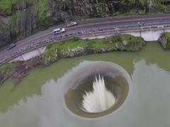 2017-02-22加州伯耶萨湖现巨型大洞 罕见奇观吸引游客驻足观看
